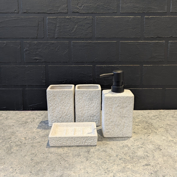 Elevate your bathroom style with the Bathroom Ceramic Set 005852, a premium ceramic accessory set designed for homes, villas, and hotels in Sri Lanka. Featuring a unique textured white finish with subtle speckled detailing, this collection brings a refined and modern touch to any bathroom space across Colombo, Galle, Kandy, and Negombo.