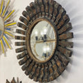 Rustic Sunburst Mirror with Wood and Rope Accents